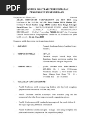 Perjanjian Kontrak An Pengangkutan Kenderaan Onkyo Adaza 15 Orang Pdf